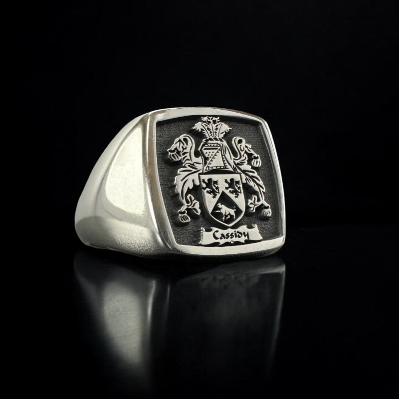 Composée d’argent sterling 925, la bague anneau à face carrée personnalisable est une joaillerie de grande qualité. Sa face carrée personnalisée se décline en 4 dimensions. Il est possible aussi bien de graver des initiales que des motifs et symboles héraldiques tels que des armoiries, un écusson ou un blason.