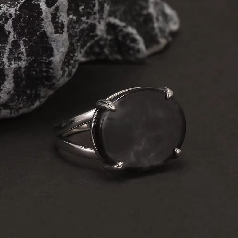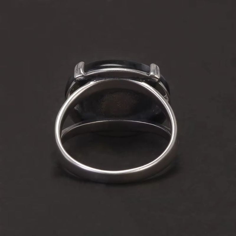Élégance intemporelle avec cette bague argent et pierre noire,