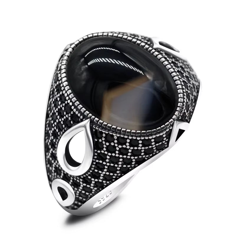 Cet anneau bague serti d’une pierre ovale d’agate est disponible en deux variantes : avec pierre d’agate marron ou noir. Son anneau est orné de motifs géométriques soignés et de petites pierres zircon cubique noire pour un style original et moderne. La pierre d’agate offre de nombreux bienfaits à son porteur. Elle éloigne les mauvaises ondes et apaise vos tensions et vos angoisses.