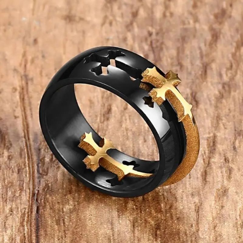 Anneau bague noire avec croix or ou argent,