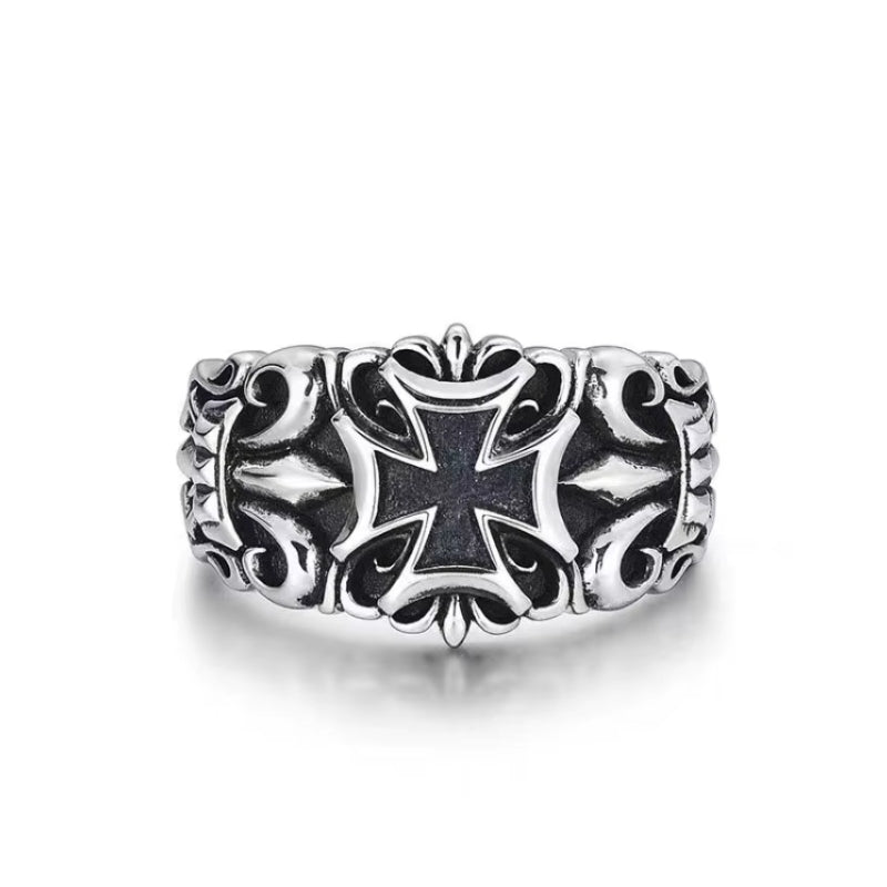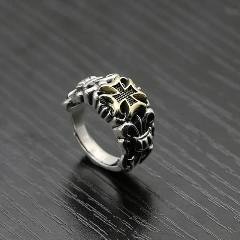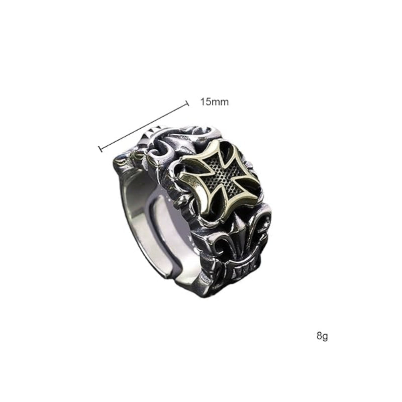Détails techniques de cette bague homme croix à fleur de lys