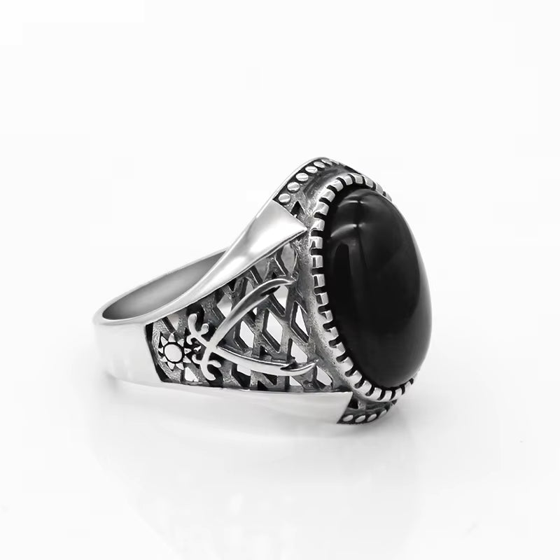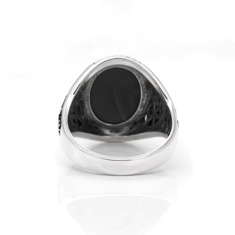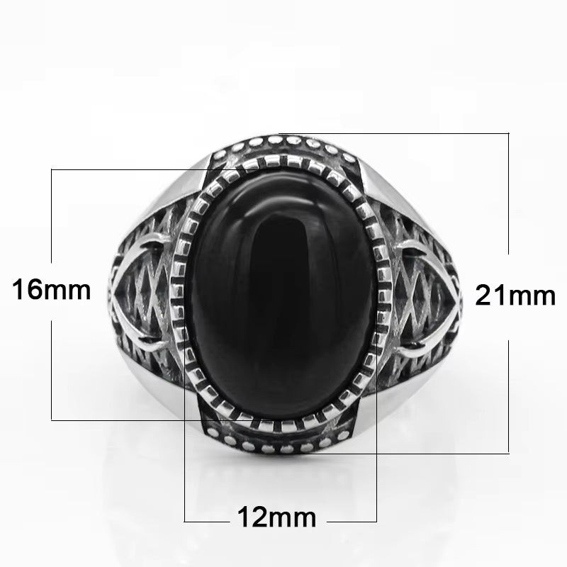 Détails techniques de la bague anneau islam ornée d’une pierre ovale d’onyx noir